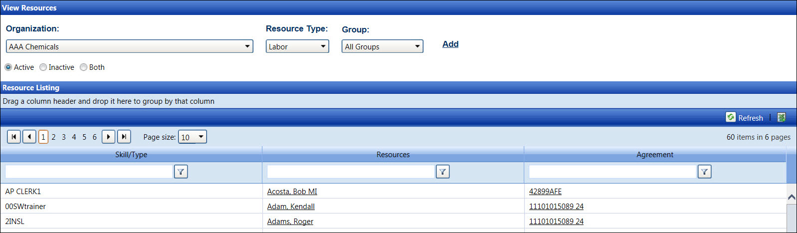 Click the Both button to display active and inactive resources in the Resource Listing.