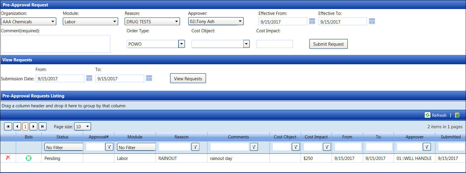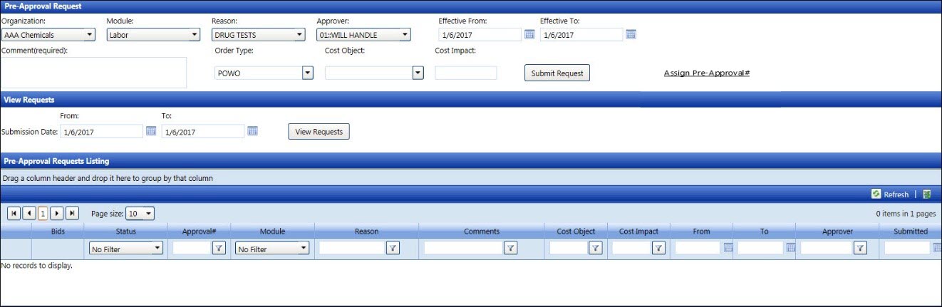 to open the Pre-Approval Request screen. Refer to Submit