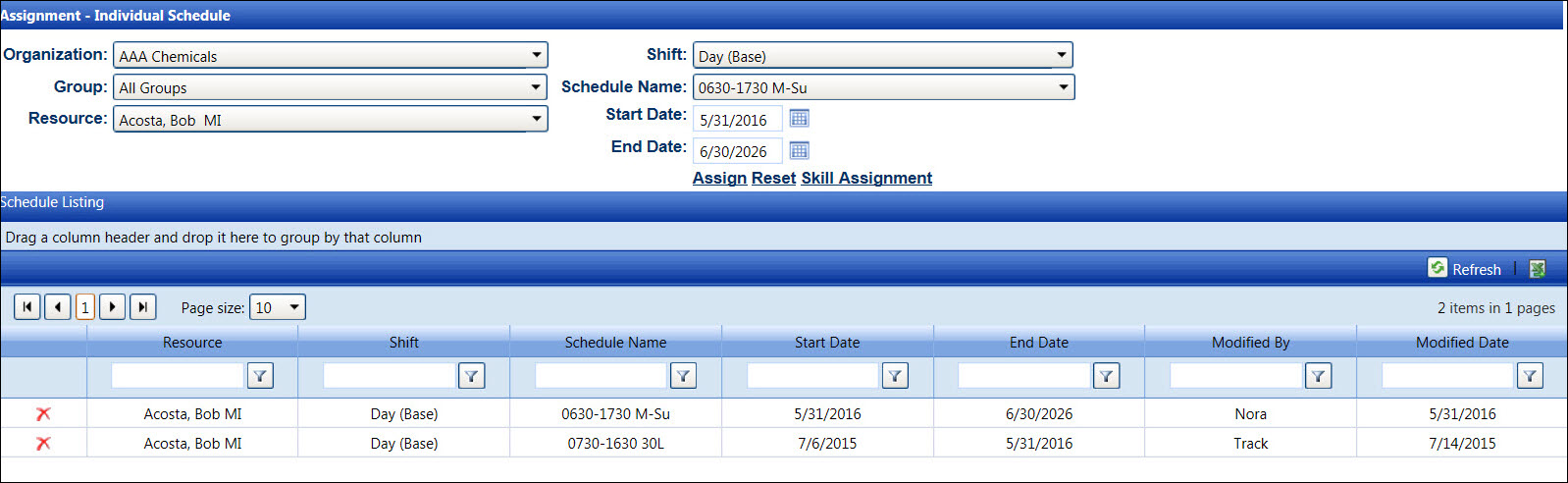 Select another labor resource from the Resource drop-down list then repeat steps to assign a schedule to the selected labor resource.