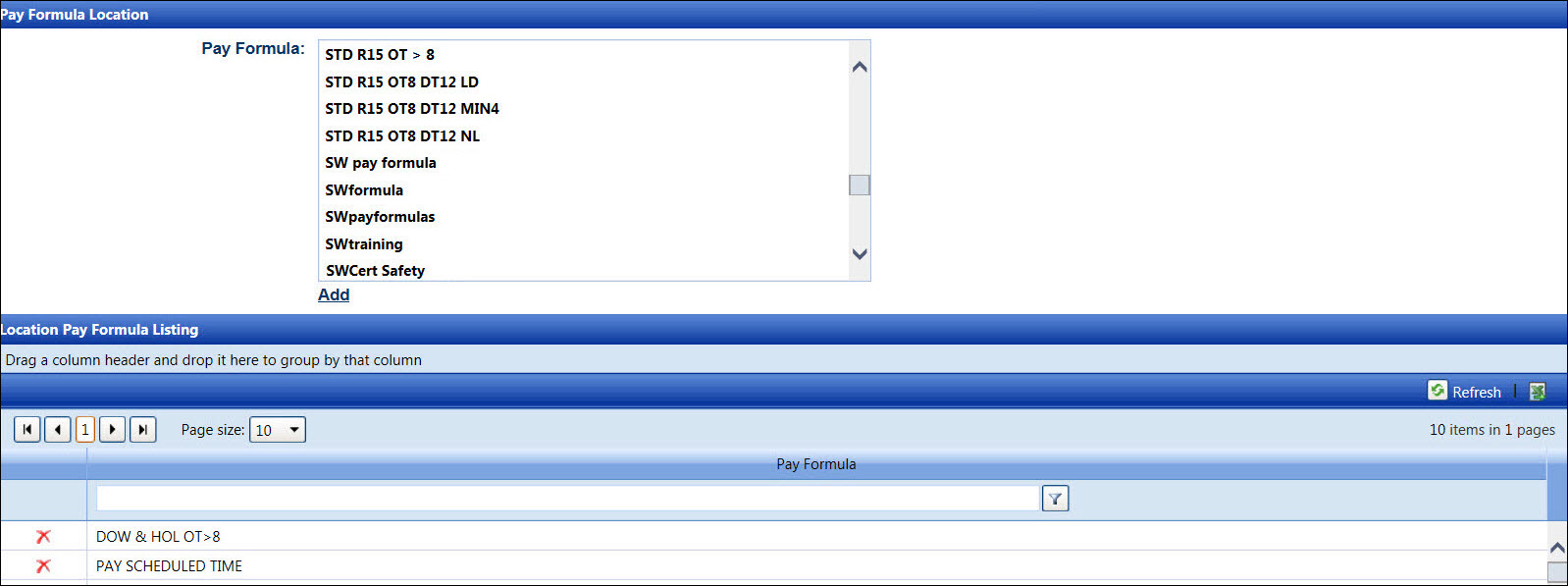 Click Add to add the pay formula to the selected location and display the selected pay formula in the Location Pay Formula Listing.