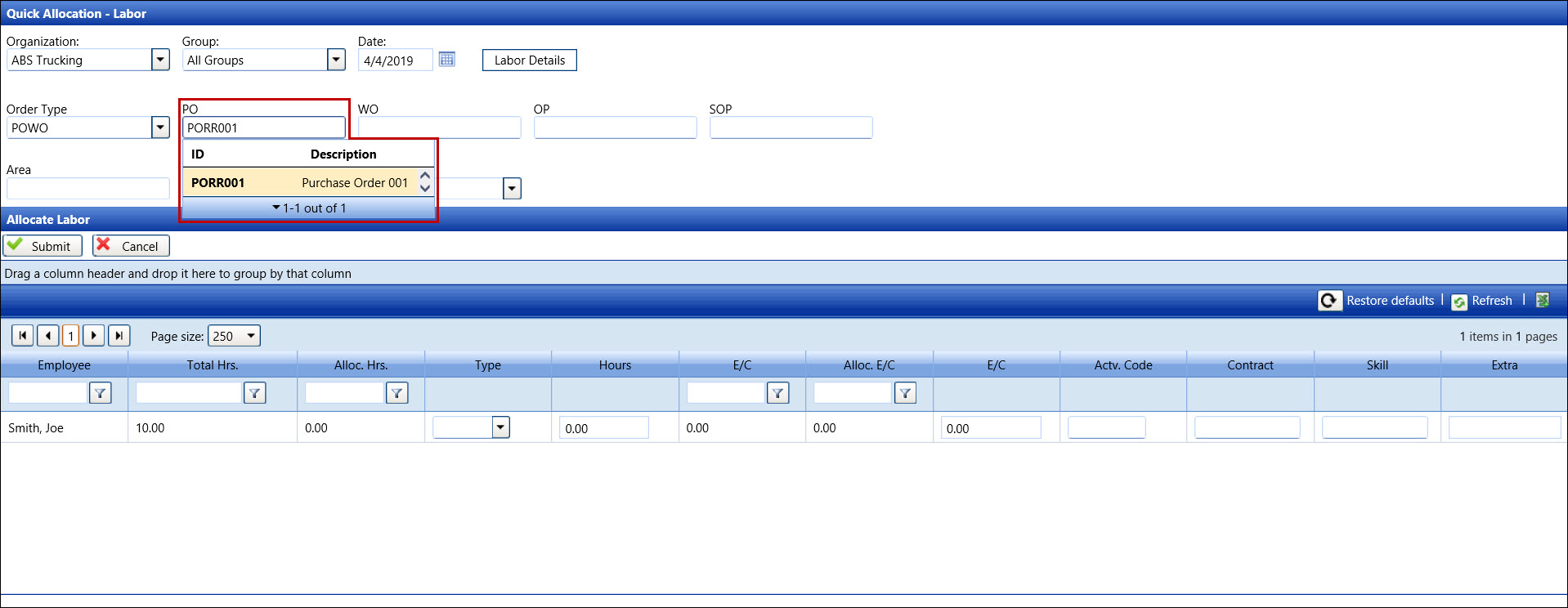 Allocate Labor (Allocations > Allocations > Labor Hours)