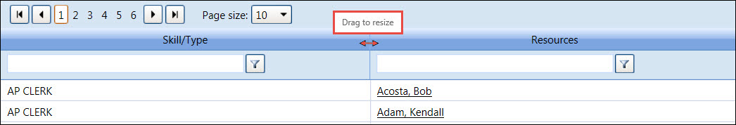 The number of records and pages are located at the top right corner of the grid. Select the number from the Page Size drop-down list to display the selected number of records per page.